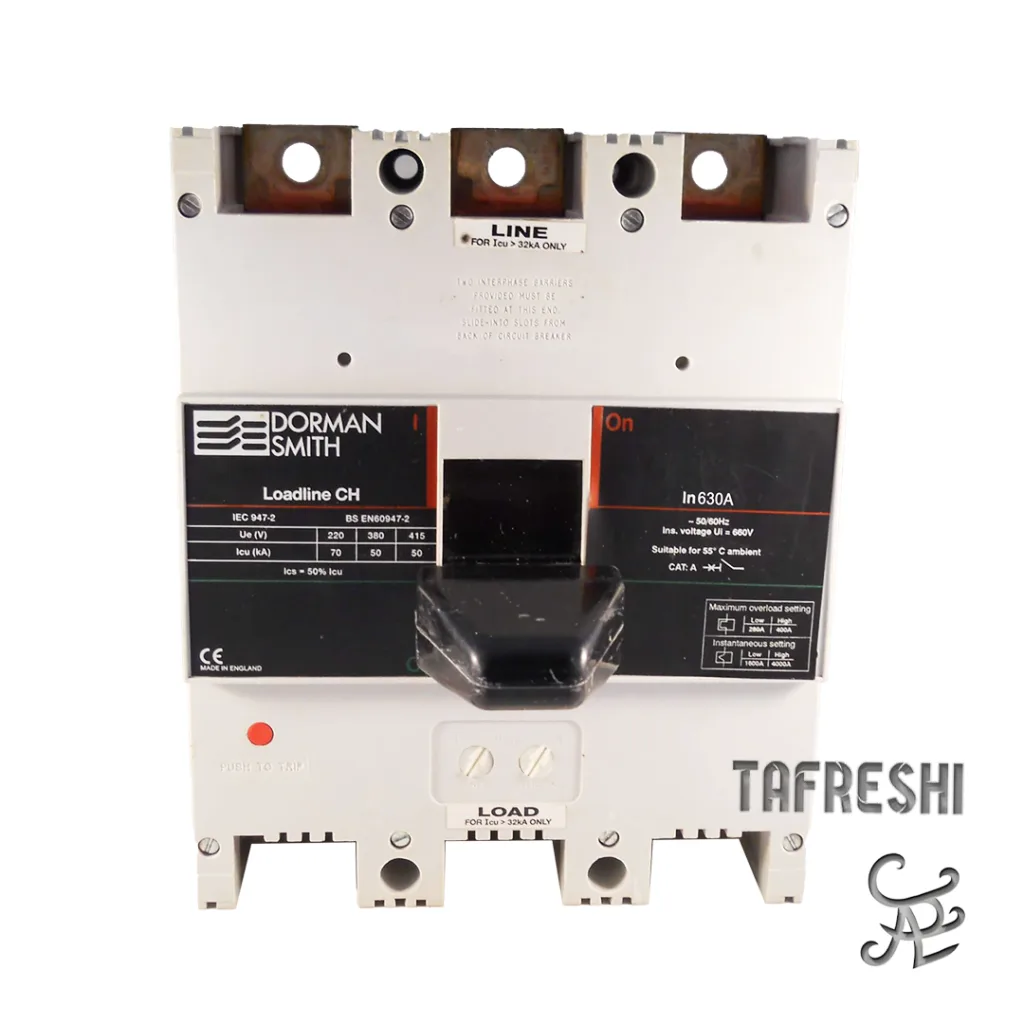 کلید اتوماتیک کمپکت برند دورمن اسمیت 630 آمپر ، سه فاز ، قابل تنظیم Dorman Smith Loadline sersies D MCACB 630 A